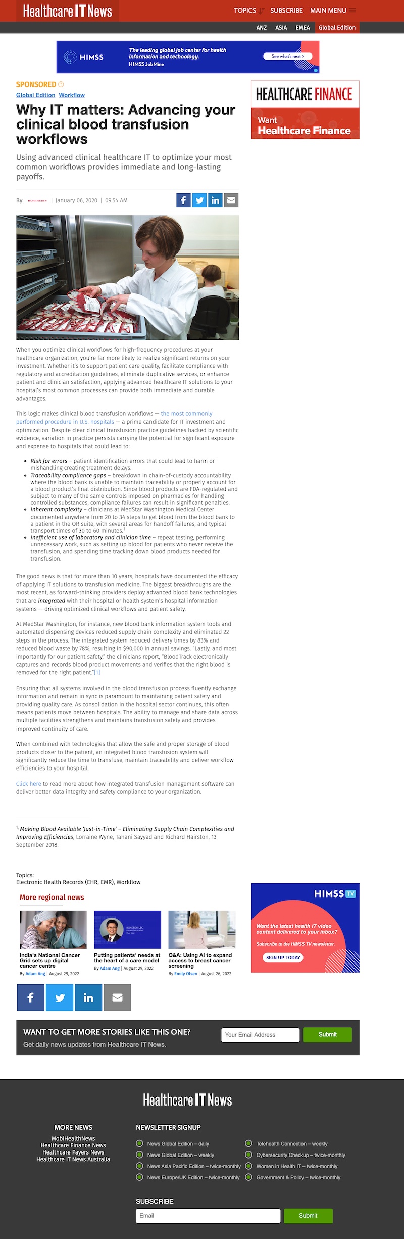 Why IT matters: Advancing your clinical blood transfusion workflows (full text)