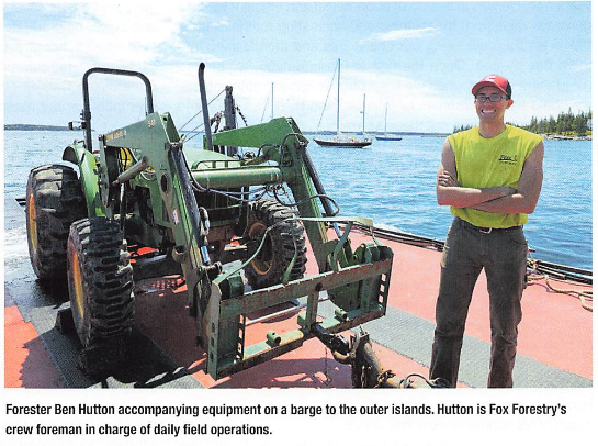While the headcount over the years has ebbed and flowed like the tide, Fox Forestry employs between 10-15 people, many of whom have graduated from the University of Maine or Maine Maritime Academy. Those from the latter have proven useful when Fox is moving its equipment on and off barges that ferry them out to the islands they serve, occasionally bunking out overnight on a small spit of forest miles from the mainland.